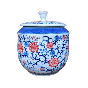 Blue and Red Floral Ceramic Storage Jar – Chinese Style Tea Canister