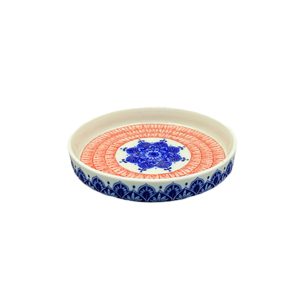 Blue and Red Mandala Ceramic Tray – Elegant Fruit Plate & Home Decor Accent