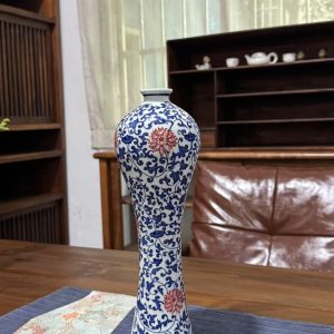 Be the first to review “Blue and White Underglaze Red Ceramic Vase with Twisted Branch Pattern – Elegant Home Decor”