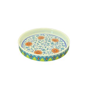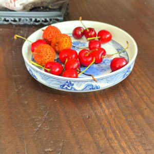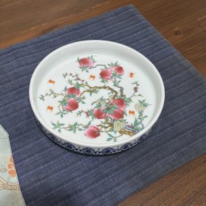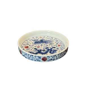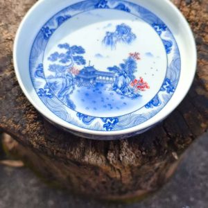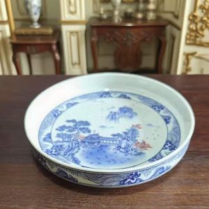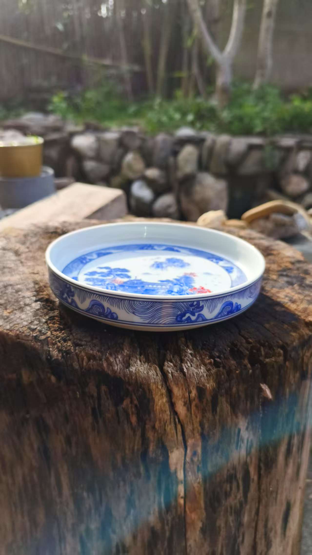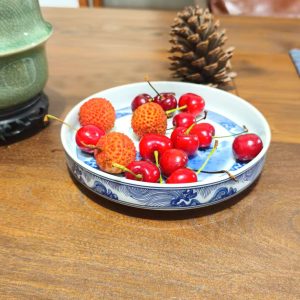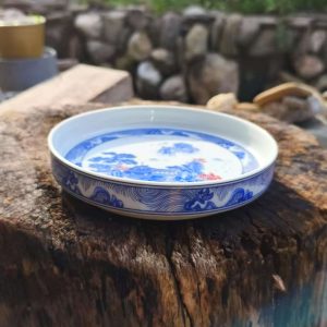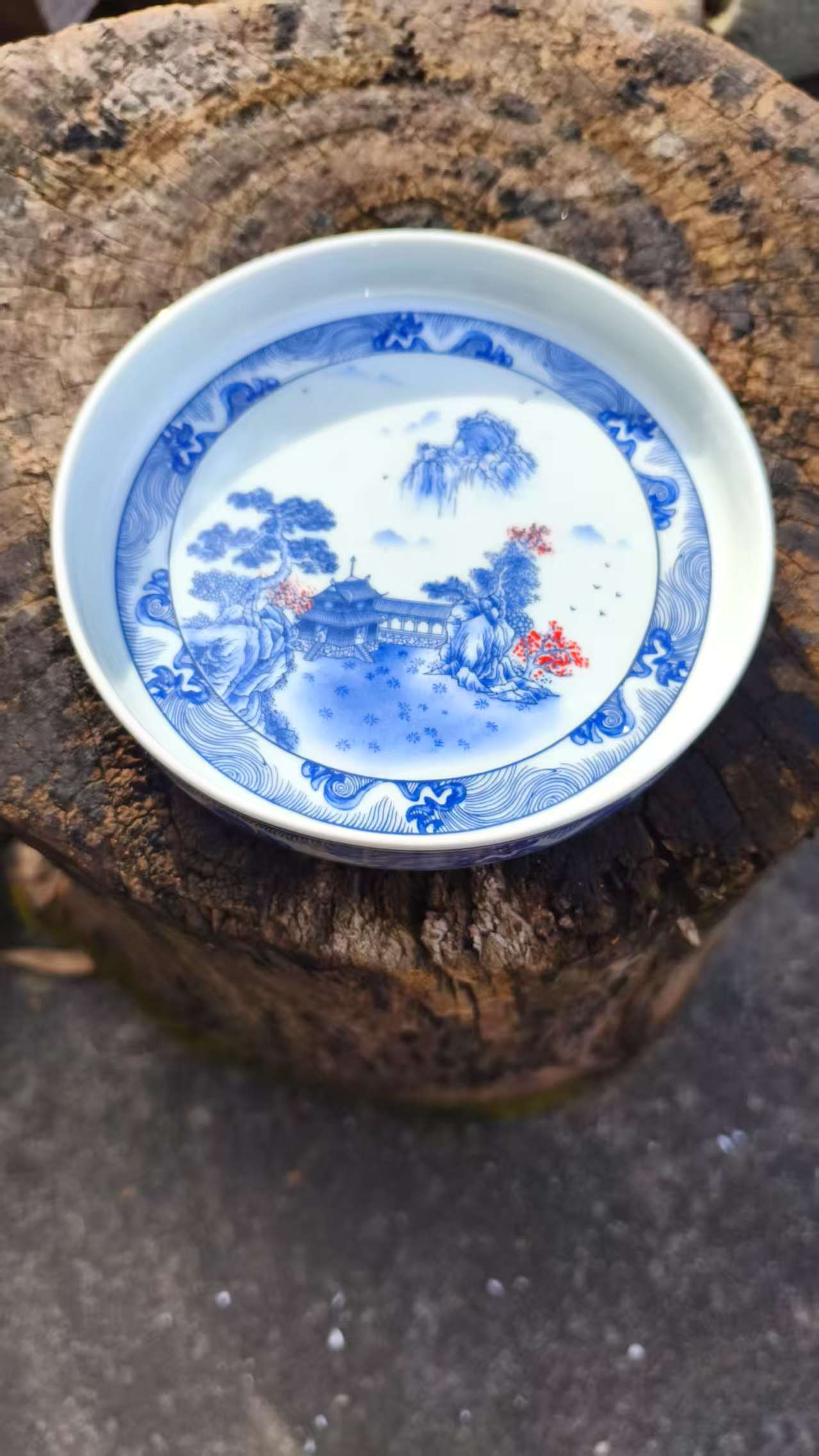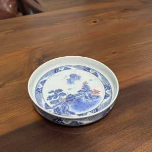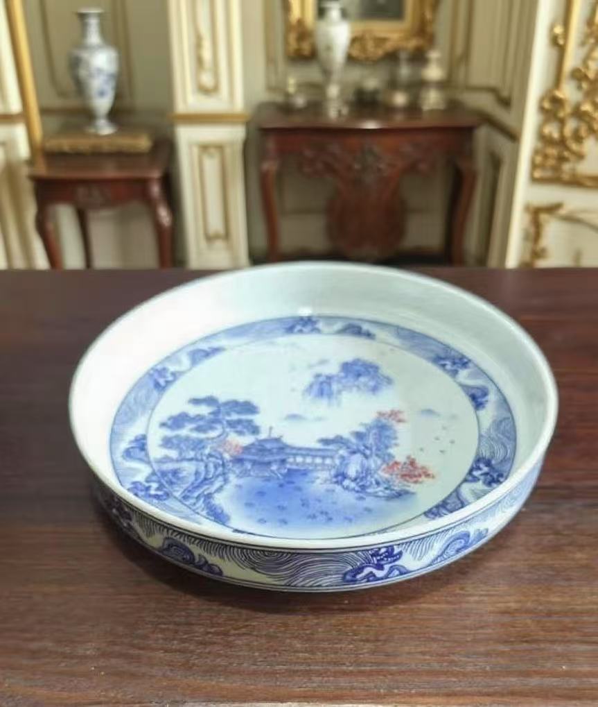 Enhance your space with this blue and white Chinese ceramic tray featuring traditional landscape, architecture, and red leaf designs. Perfect for home decor, serving fruits, or organizing small items.