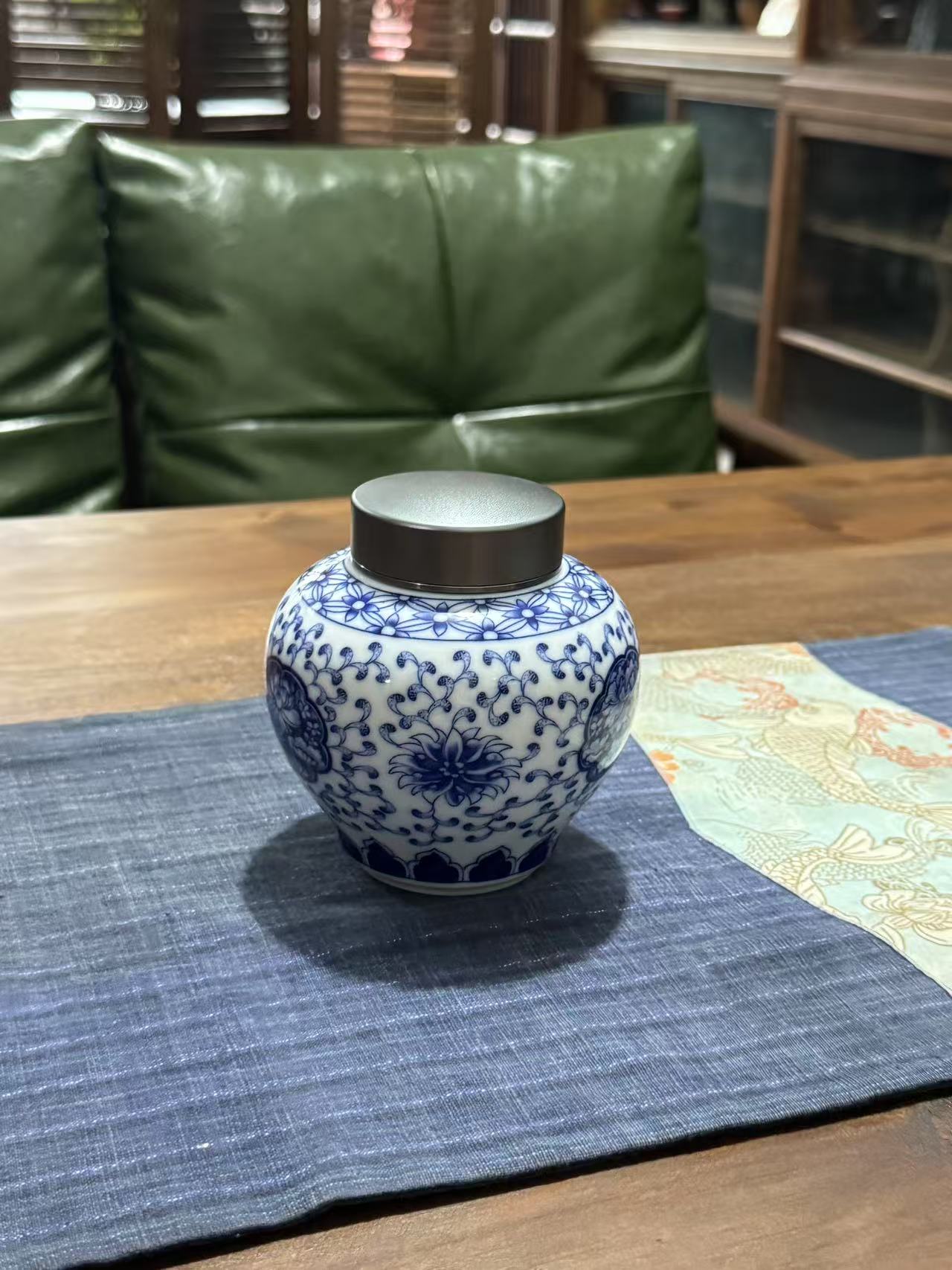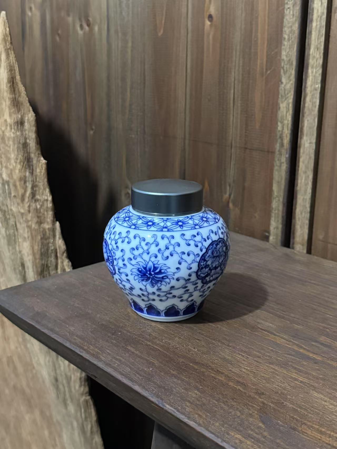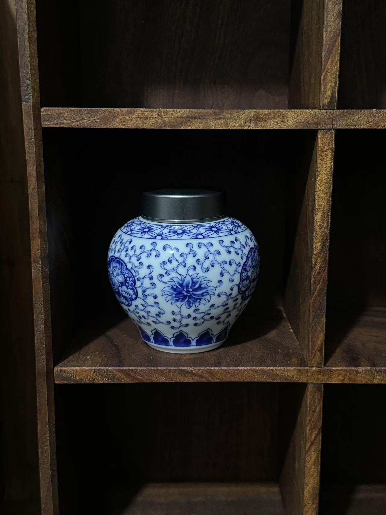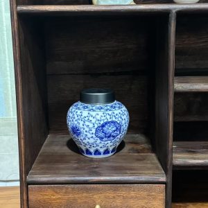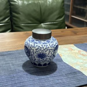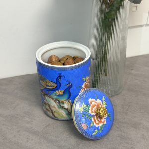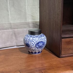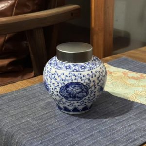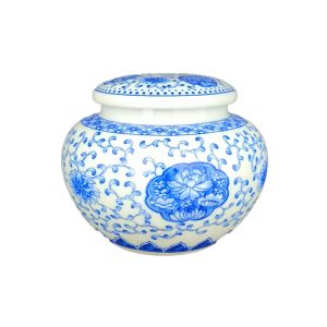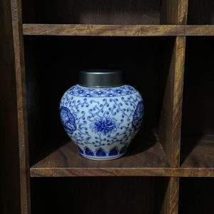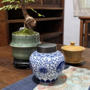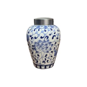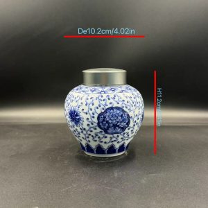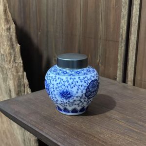 Be the first to review “Blue and White Porcelain Tea Jar with Metal Lid – Traditional Floral Ceramic Storage Canister”