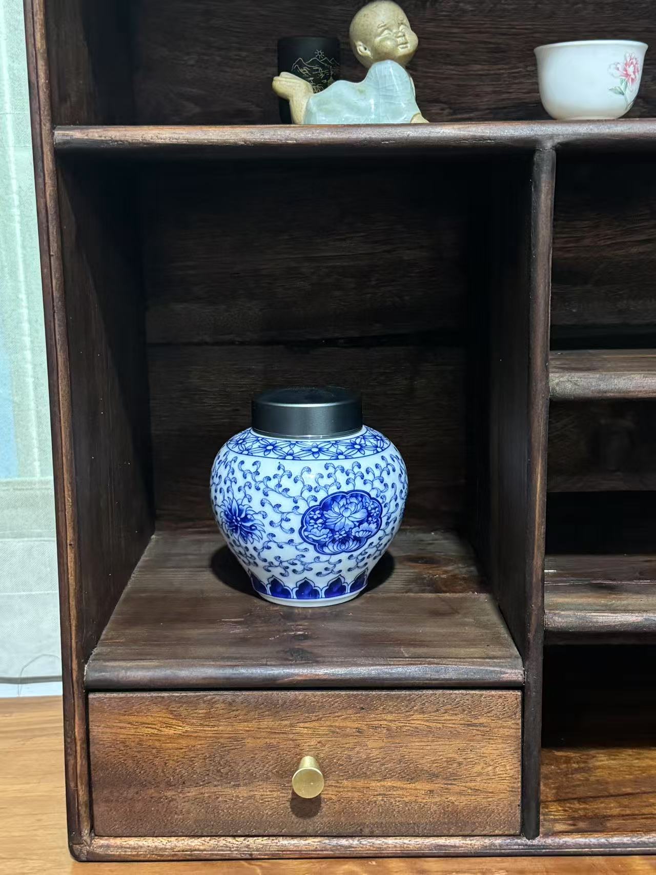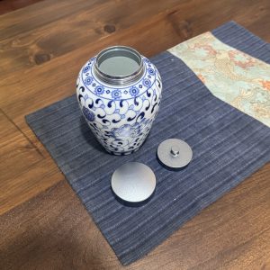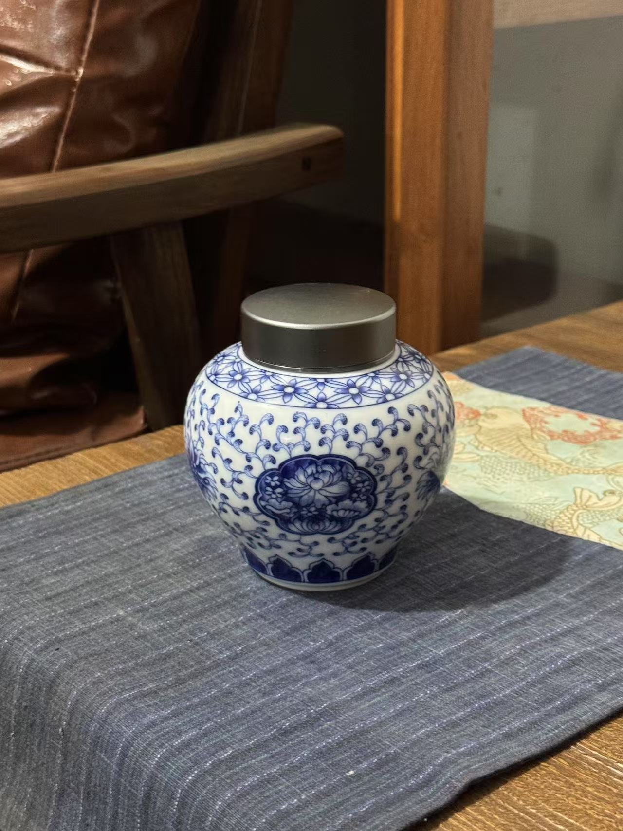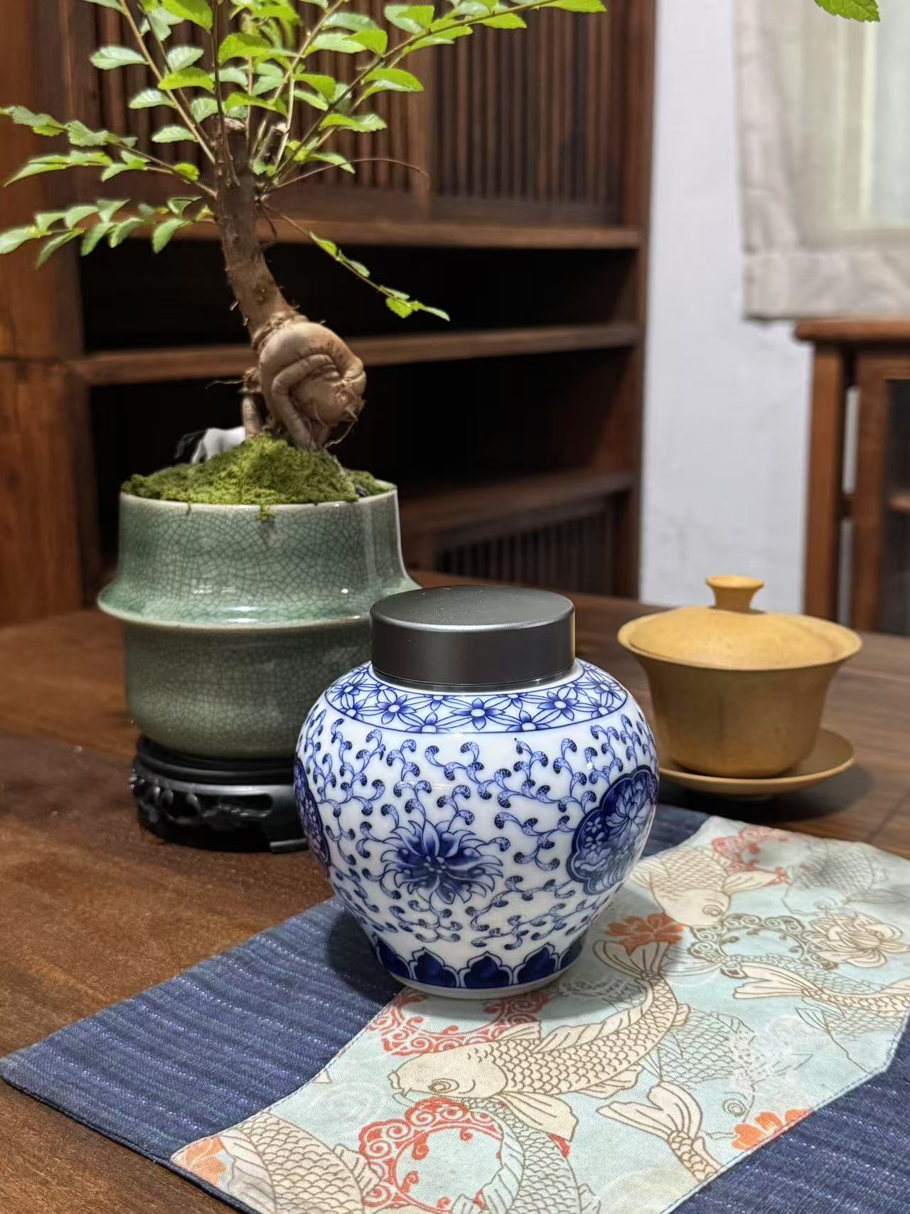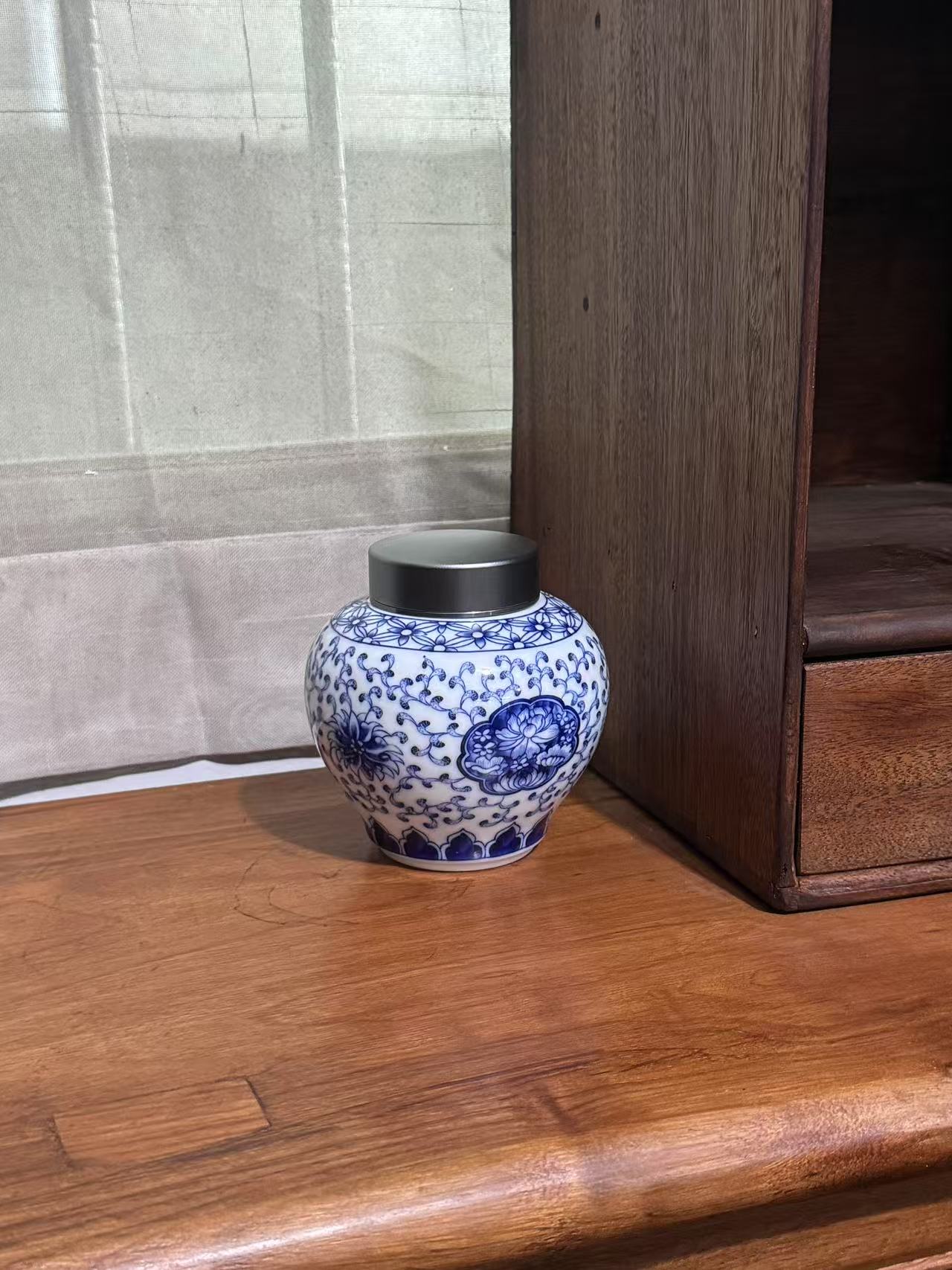 Be the first to review “Blue and White Porcelain Tea Jar with Metal Lid – Traditional Floral Ceramic Storage Canister”